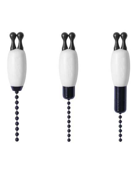 Les chaînes à billes en acier inoxydable ont un connecteur en polymère léger à une extrémité et un connecteur de 3g en acier inoxydable noir à l'autre qui peut être inversé pour ajouter du poids à la bobine si nécessaire.