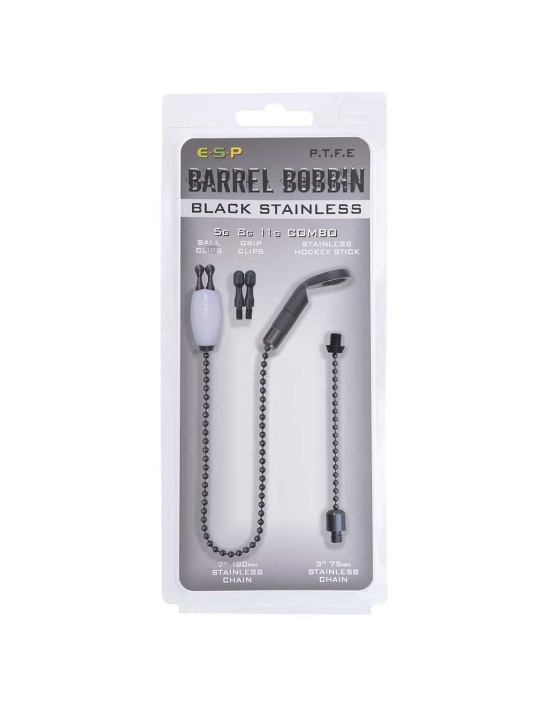 Chaque kit ESP contient la bobine PTFE, des clips billes et clips pince interchangeables, des chaînes à billes en acier inoxydable de 3" et 7", une attache hockey stick en acier inoxydable et un poids supplémentaire de 3g en acier inoxydable.